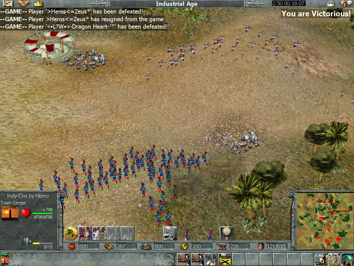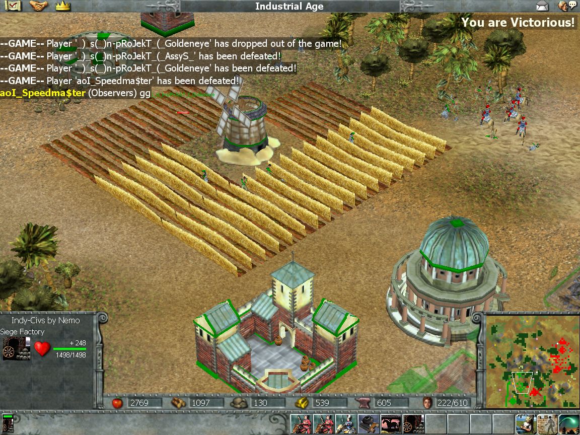Excellent game this was, it was the first time I used this civ, that since then has turned out to be perhaps my best indy civ. Goldi started inf/goon and I started cav, morale/towers saved me in the first attack and then I was able to outboom him and use my sieges. gg!