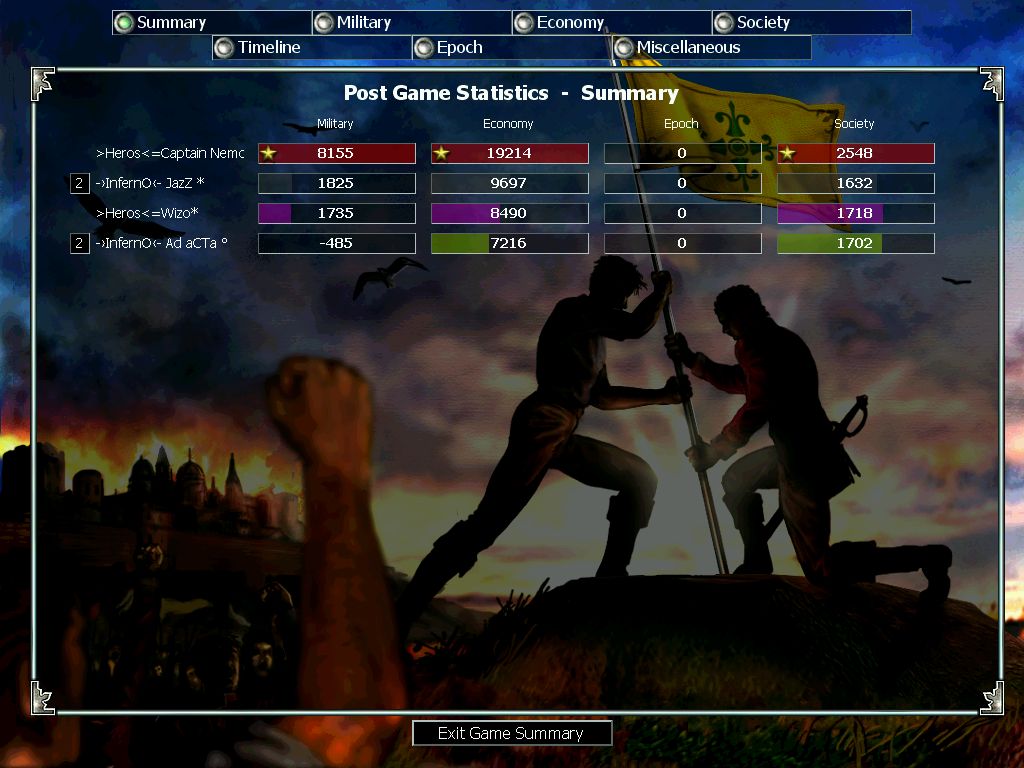 Beware, Nemo will find a screen to counter anyone elses on here ;). Great clan war of old is right nemo. We were naive in that we knew that you guys wud try counter us but that we wud still win... the double drags were too over-powering tho!!. But we shown that we werent one trick ponies in the second game!! wasnt too thought out but simply effective ;). the walls were key to defend the cav rushes and focus attacks on certain fronts!