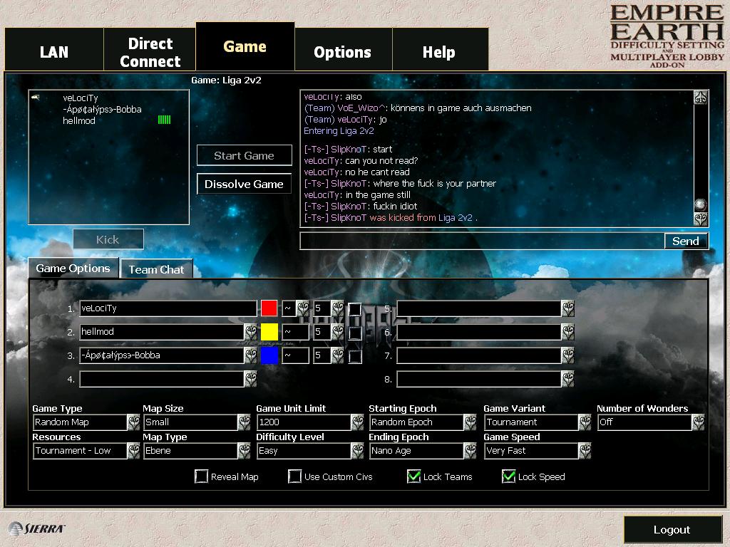 you kicked slipknot then coote then insisted on me observing even though i was the 3rd person in the game