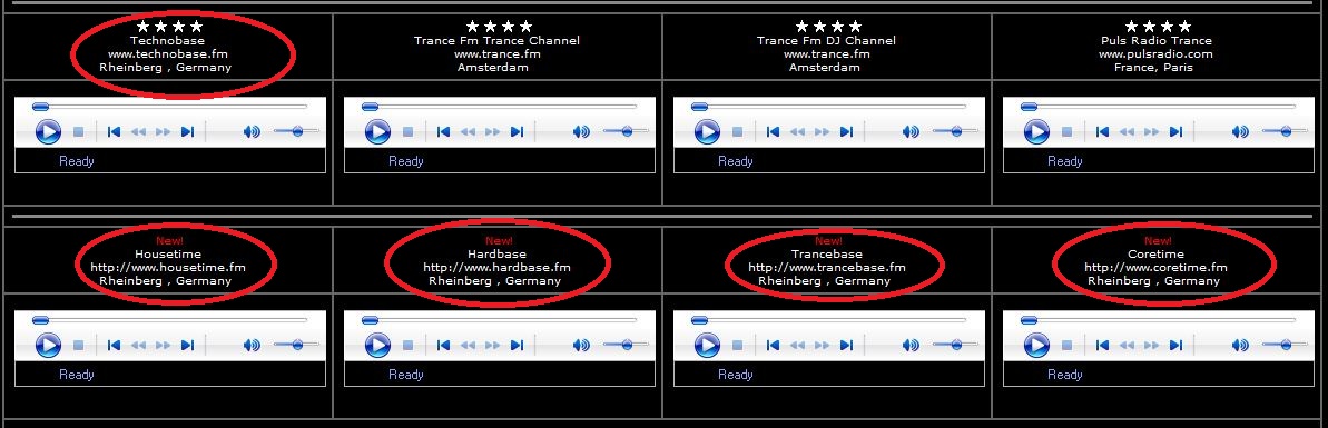 I like Trance Fm, Puls Radio Trance, Technobase/www.technobase.fm, Dirty South Radio, Big R Radio 90s Alternative Rock, Big R Radio Alternative Rock, West Coast Gangsta Rap.