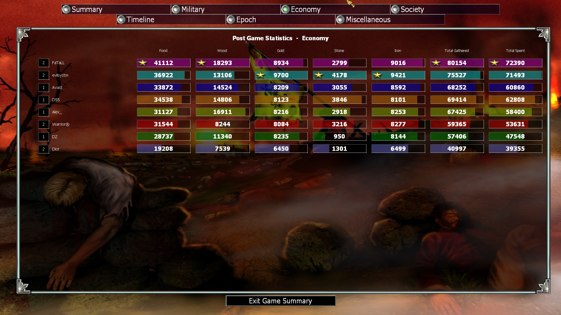 As you see he gathered a total of 31574 food. In game he had a 3453 food. If you look at his captials as him you will see he has them popped and several cits in production. with the cits he currently has and the cits in production, this comes up to 640 cits exactly I believe. he aged from pre to middle which cost a total of 12,342 food. cits he had and are in production cost a total of 25600 food. 25600+12342+3453=41395 food he would of needed so he glitched 9821 food if I am correct.