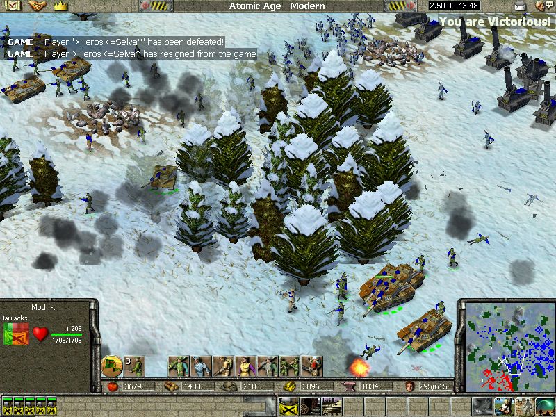 GR game. Modern SH with 4000 pop, snowballed like crazy. Also since I've been learning some tricks from Mod DM I was eventually able to basically make a red line all over the map of my units. This turned into 3v4 very quick then into 2v4, but me and garaKTB eventually won it! GG