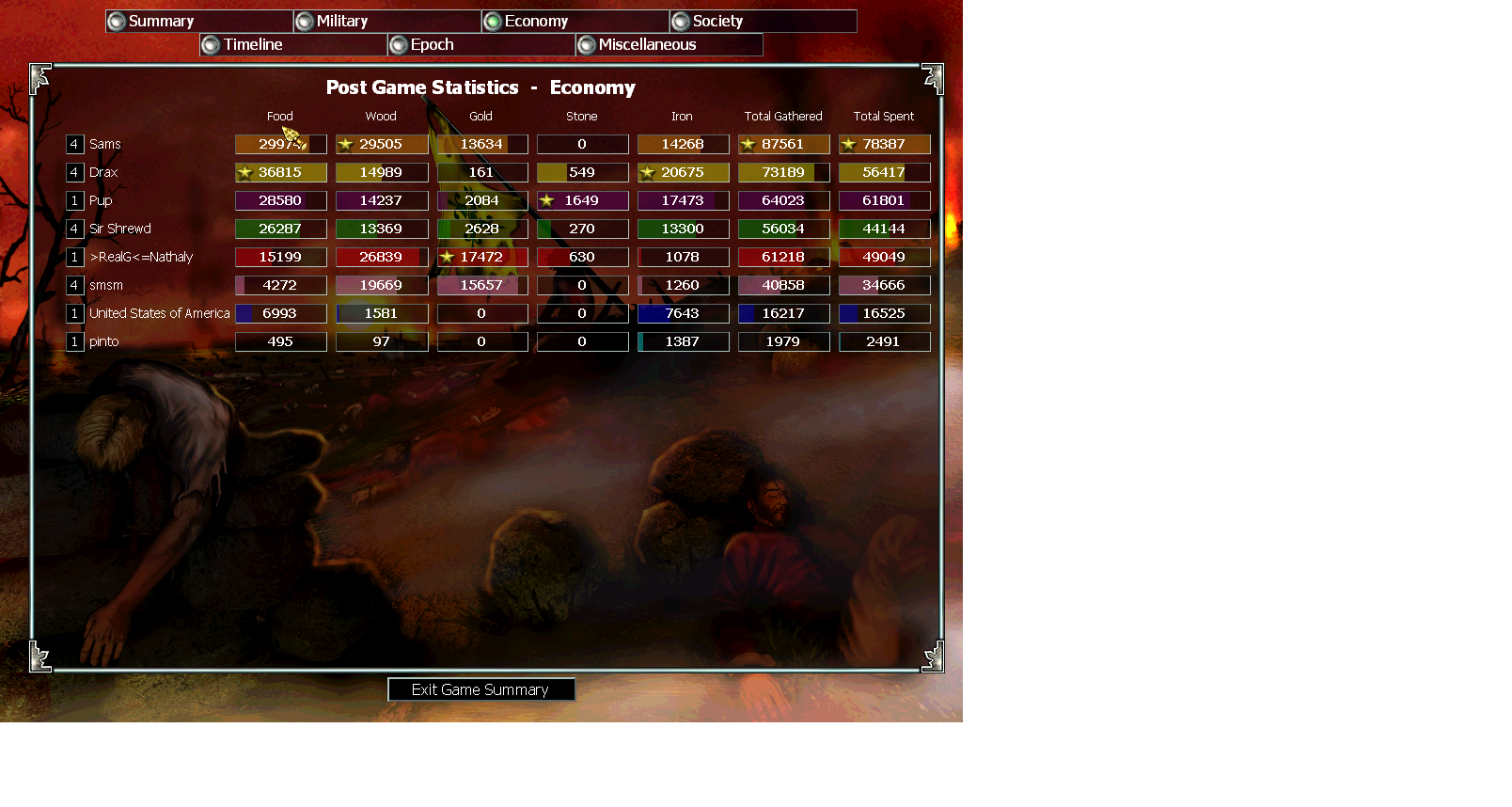 well he was bragging to me that he will post on forums, so i did it before he could xD. perhaps that would have made him look like a fool because clearly nothing wrong here in these stats. he said i had 18k military while about 22k economy, he just looked at the summary and said that this was impossible. apparently these stats are total points for military kills and losses, buildings razed or lost, army size etc but he thinks its numbers. well how is it even possible to make 18000 units of swords in that time period lol.