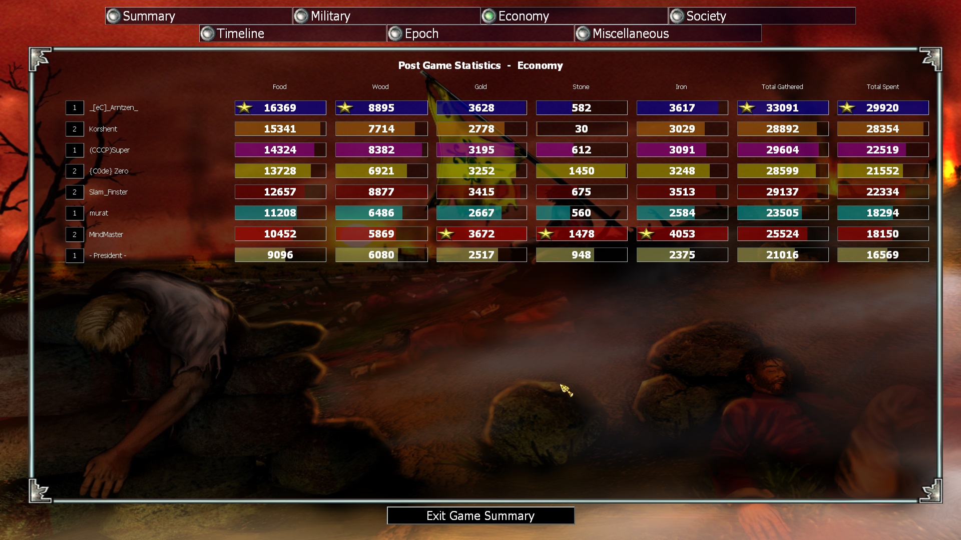My gold: 100 from start + 3628 gathered. I payed for copper which costs 844 in gold and bronze which costs 1320