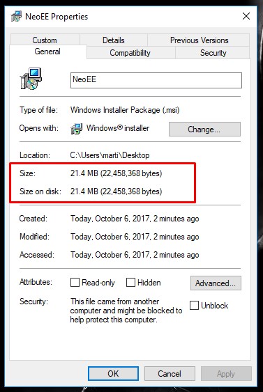 2. Make sure the file size of the NeoEE.msi file the same as mine: 3. Run NeoEE.msi