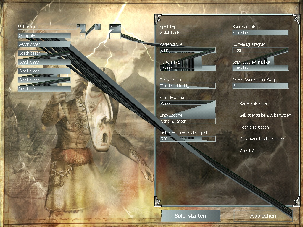 I downloaded EE from the Download Section of Save-EE and installed all the updates. As soon as i click the "Random Map/Skirmish" button (I'm sorry, i'm not playing in english), the Menu goes Wild as you can see at the "Skirmish Menu" Screenshot
