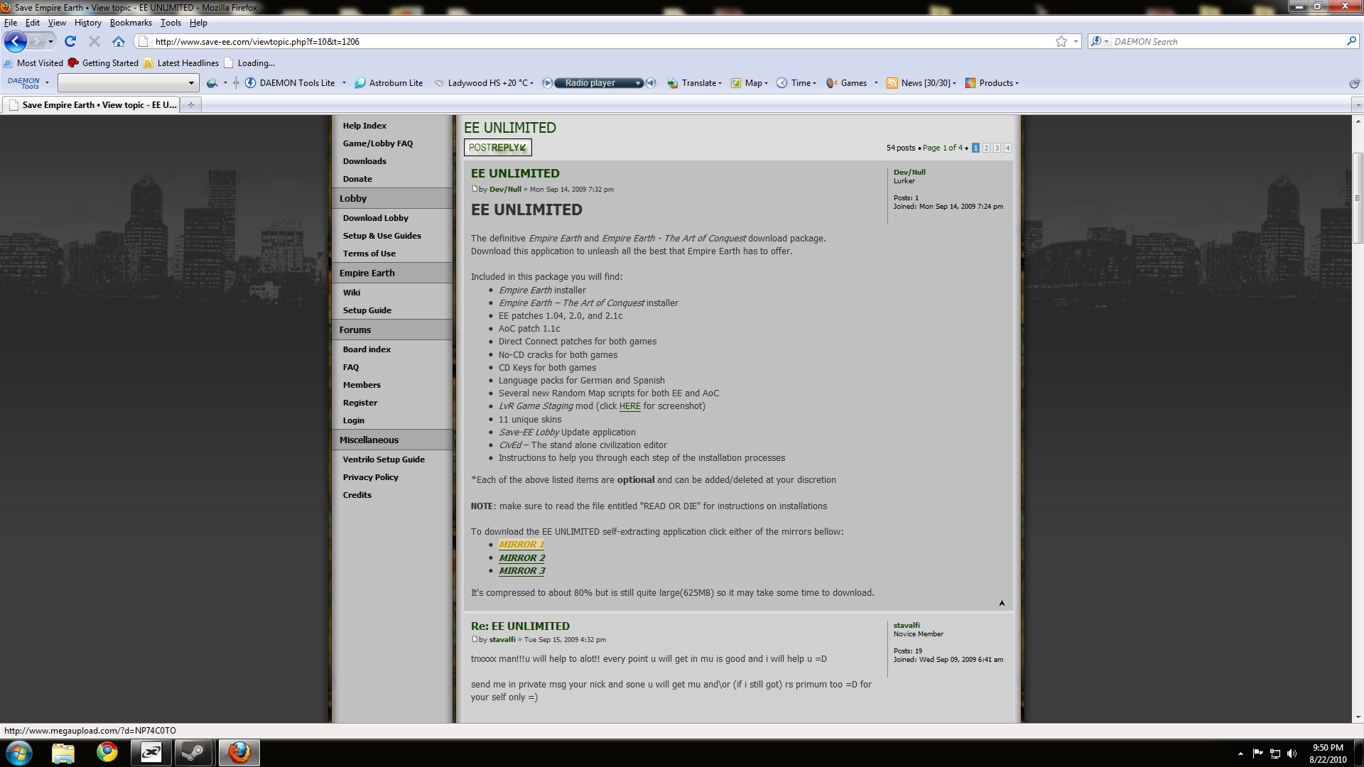 The first thing of course is downloading the game which can be found in the EE general discussion in the topic "EE Unlimited" Click any of the mirrors.