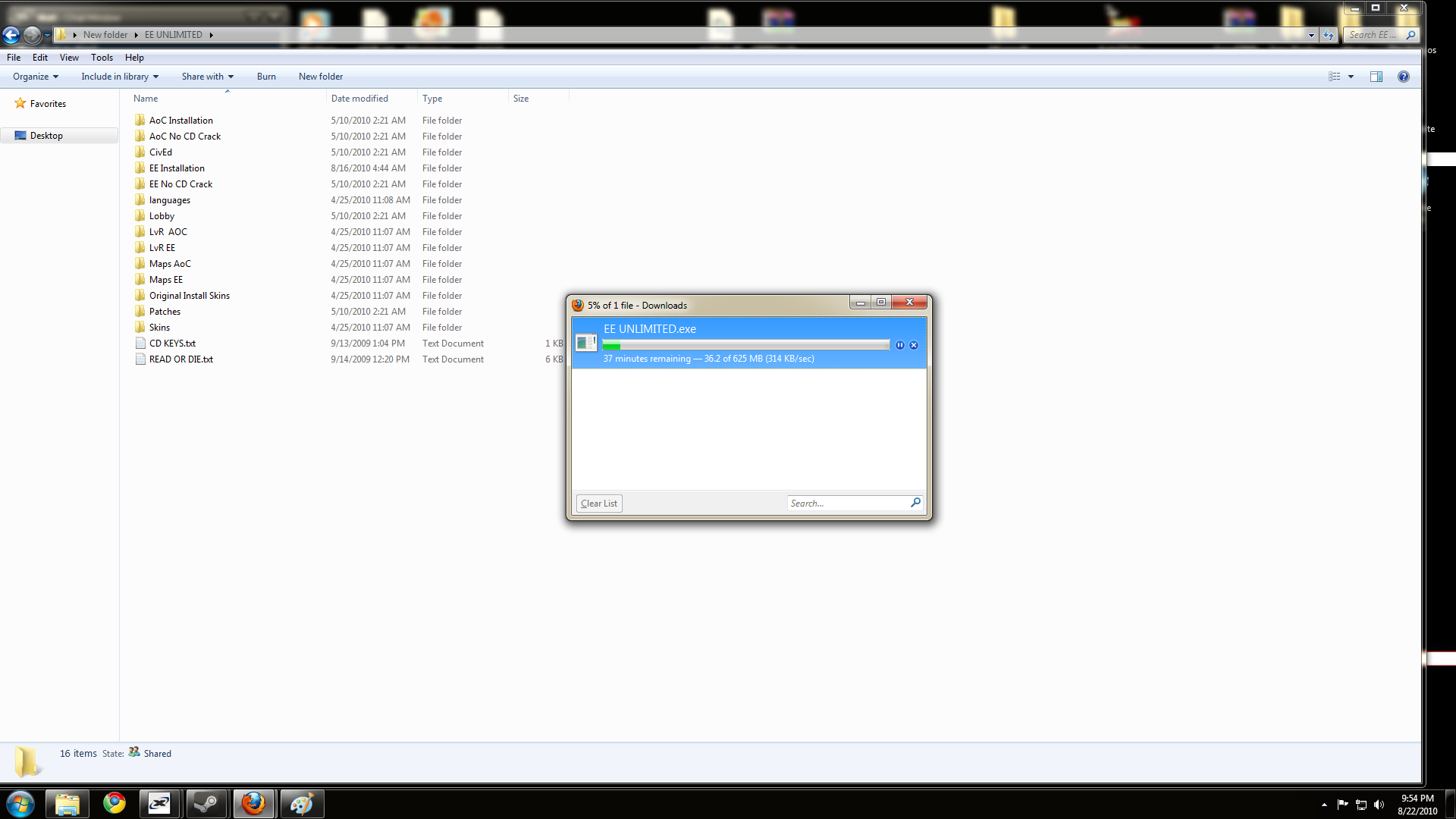 Download took me about 40 minutes (The game is about 600MB) the folder in the background is what comes out after you run the exe that your downloading