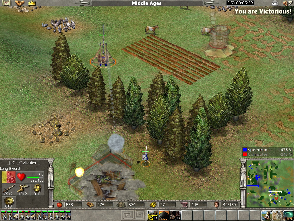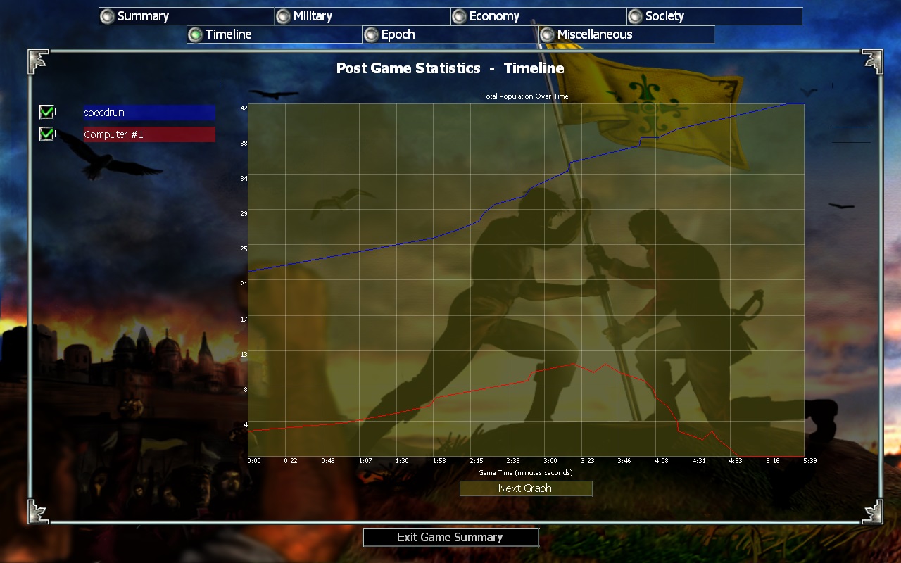 Hey all, I'm curious if anyone would be interested in doing a speedrun challenge. My friend and I are doing a Mid SH 1v1 Hard AI Tiny speedrun to see who can get the fastest time. Neither of us have played in a couple years so our times arn't great but I'm slowly getting mine down. I think back in the day sub 8min would have been easily done. My current best is 34:40 (11min 33sec).