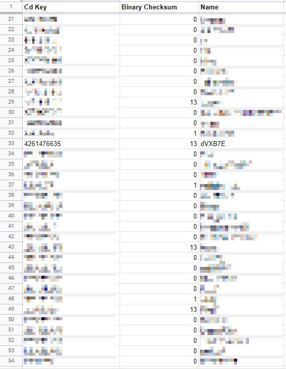 1) I don't understand programming, but since Energycube confirmed that it can be true that the list is detecting altered EE versions then its fair to say Its credible. Question is What does the list represent? Is it a daily-logins data that updates it self whenever a CDKey has logged in and detects if his EE is same as the actual one? Or A list that consists of whole NeoEE player database which have detected a single login of an altered version of EE that never been updated before? and How accurate it is in terms of detecting cheaters , lets say it can be detecting any small change that wont effect the gameplay due to failure while installing a certain game file etc..