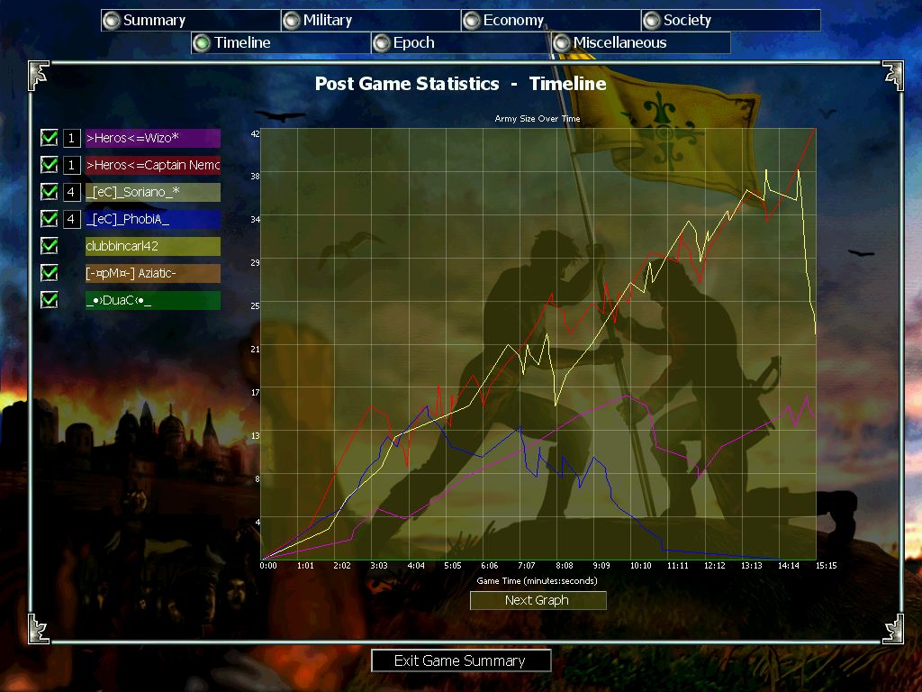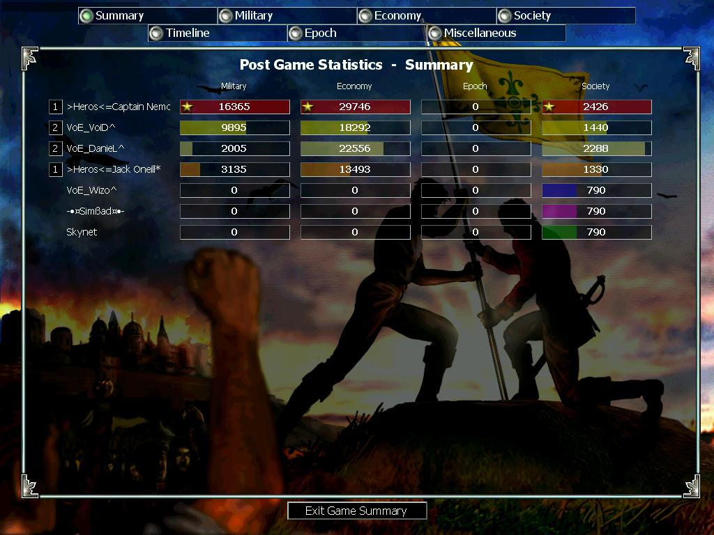 Beware, Nemo will find a screen to counter anyone elses on here ;). Great clan war of old is right nemo. We were naive in that we knew that you guys wud try counter us but that we wud still win... the double drags were too over-powering tho!!. But we shown that we werent one trick ponies in the second game!! wasnt too thought out but simply effective ;). the walls were key to defend the cav rushes and focus attacks on certain fronts!