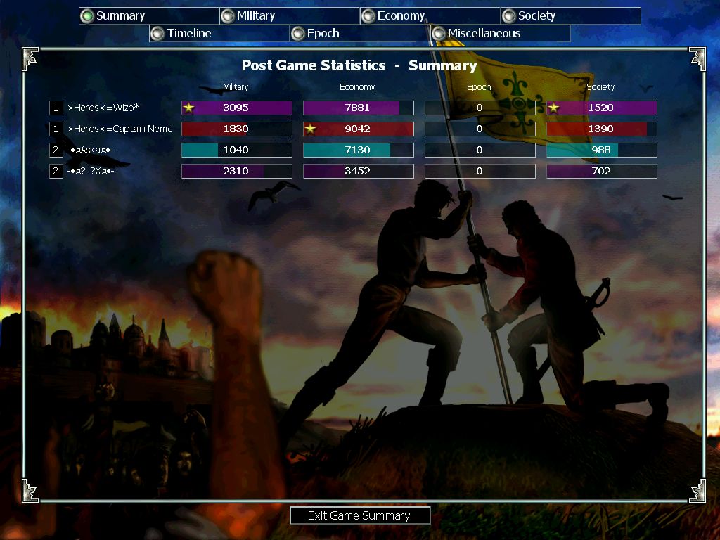 Last game I finely got h0lly as my wing and it was basically rollover. We did what we used to do way back (I trib him 100wood so he can make raxes before civ). We killed our side pretty quick, and when other side got owned by a hero push from enemies, I ran my CAs to enemy pockets base which didn't have morale so I got a shit ton of citizens kills, and then they resigned. GG's