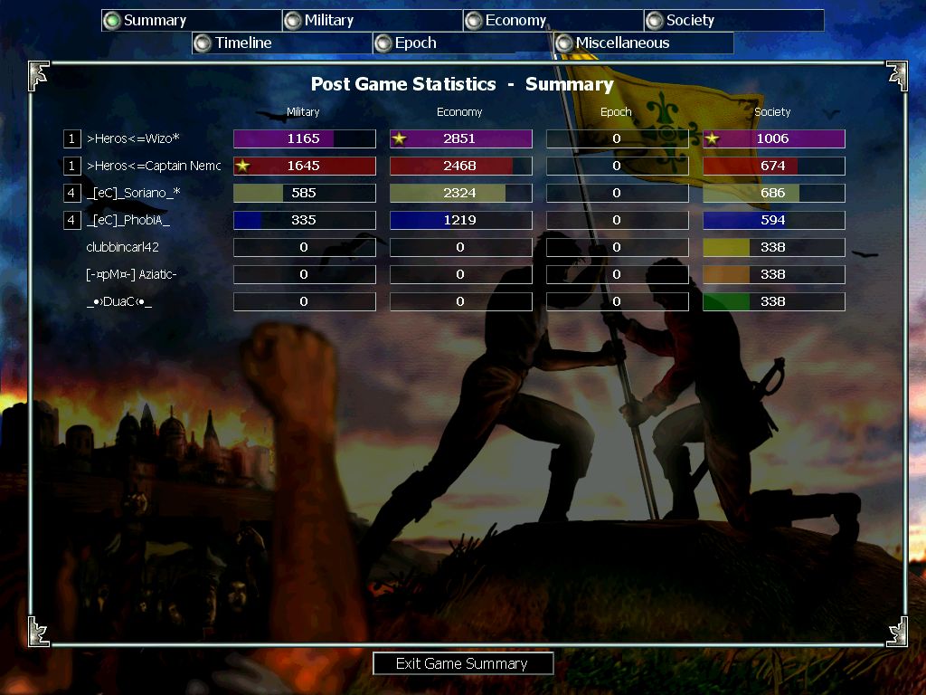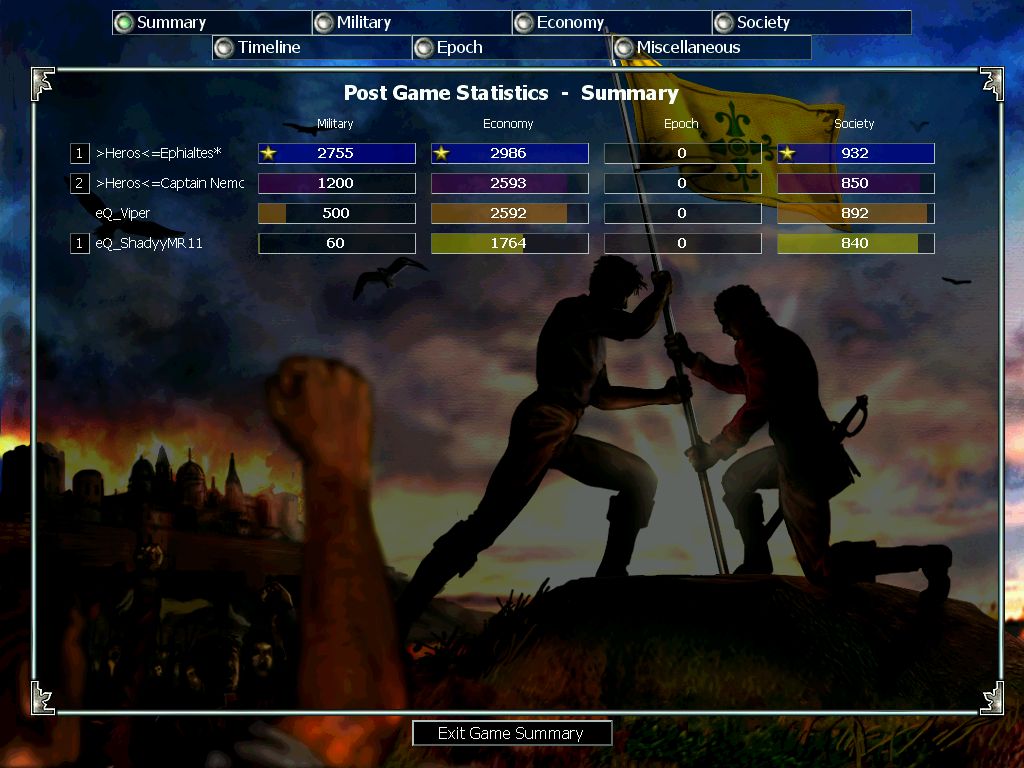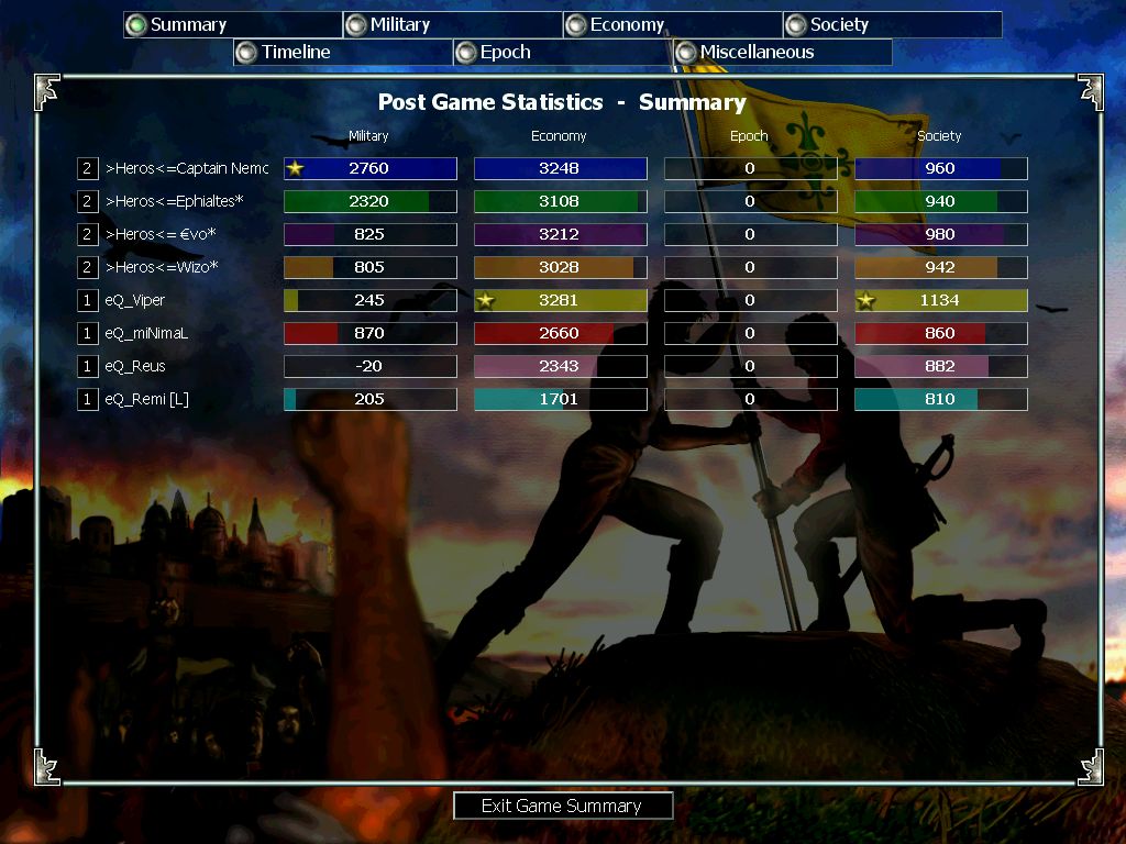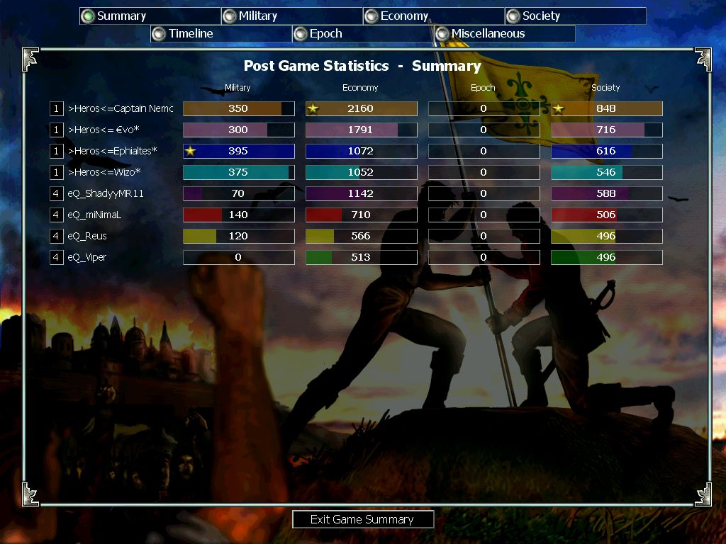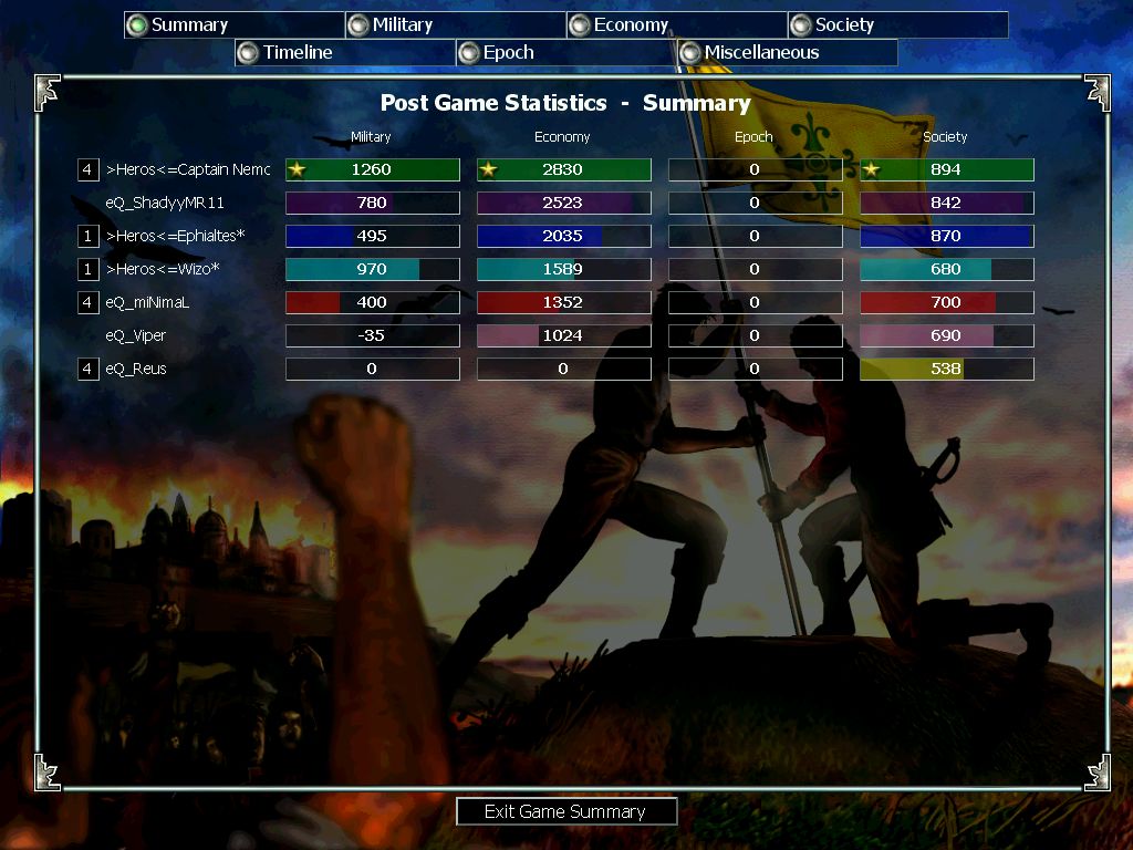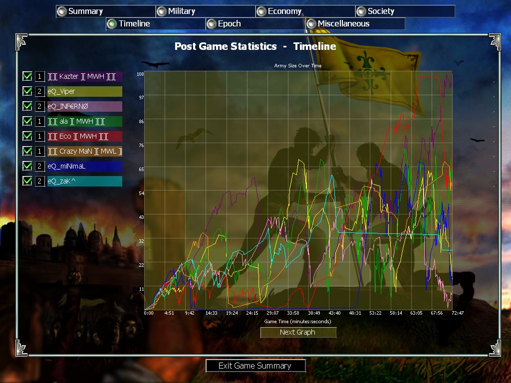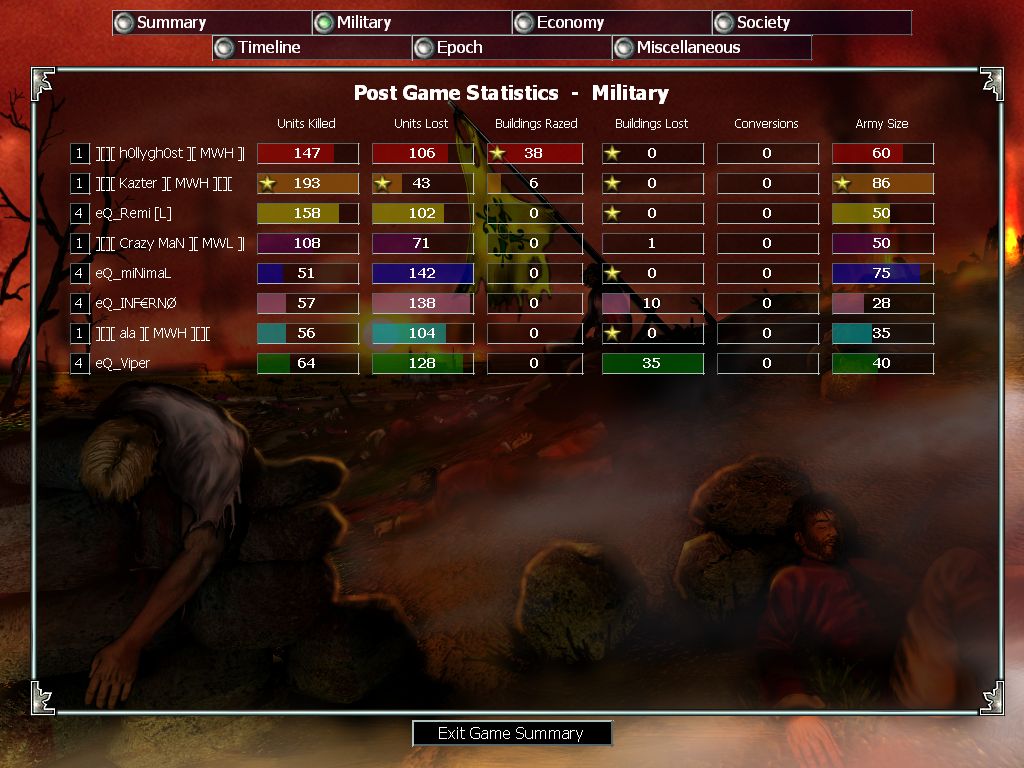 MW vs eQ clanwar. Best of 3 in Middle Ages. First game MW lost and let's say I "forgot" to take screen since I was (MAYBE?) at the bottom, and our whole team collapsed quite early in the game.