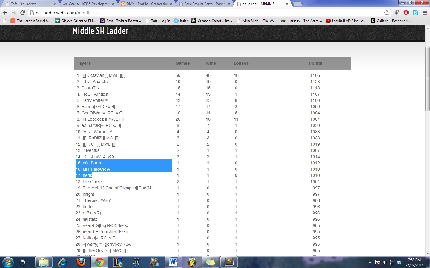 So i was just checking if i was on the ladder and umm I don't understand why Parth has 2 extra points?