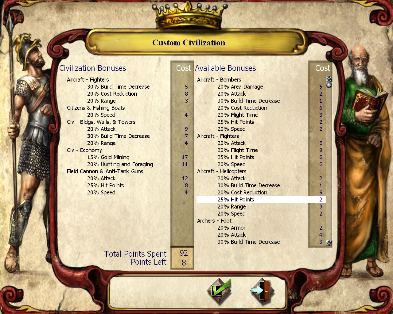 Which is all fairly obvious to all liga players who know how the population bonuses work. Still there is a ton of ligaplayers doing forageTC because they think it's the best solution of the two TC-starts. That's the reason why I posted this, to show the "advantage of forage TC" isn't great at all. You get two more citizens sure, but no bonus. Note that most people think forage TC gives greater citizens production advantage than only 2 citizens, something that just isn't true seeing you only need to gather 25 wood for the second settlement. Also if someone can show me a push that a forageTC start can stop but a regular TC start can't (because of two citizens more from forageTC) then I might change my mind, until then I'll stick with regular TC.Ghost wrote:I think the point Omega was getting at is that there's no value to TCing a forage other than having extra citizen production capability. TCs do not provide a foraging bonus, only a mining bonus.