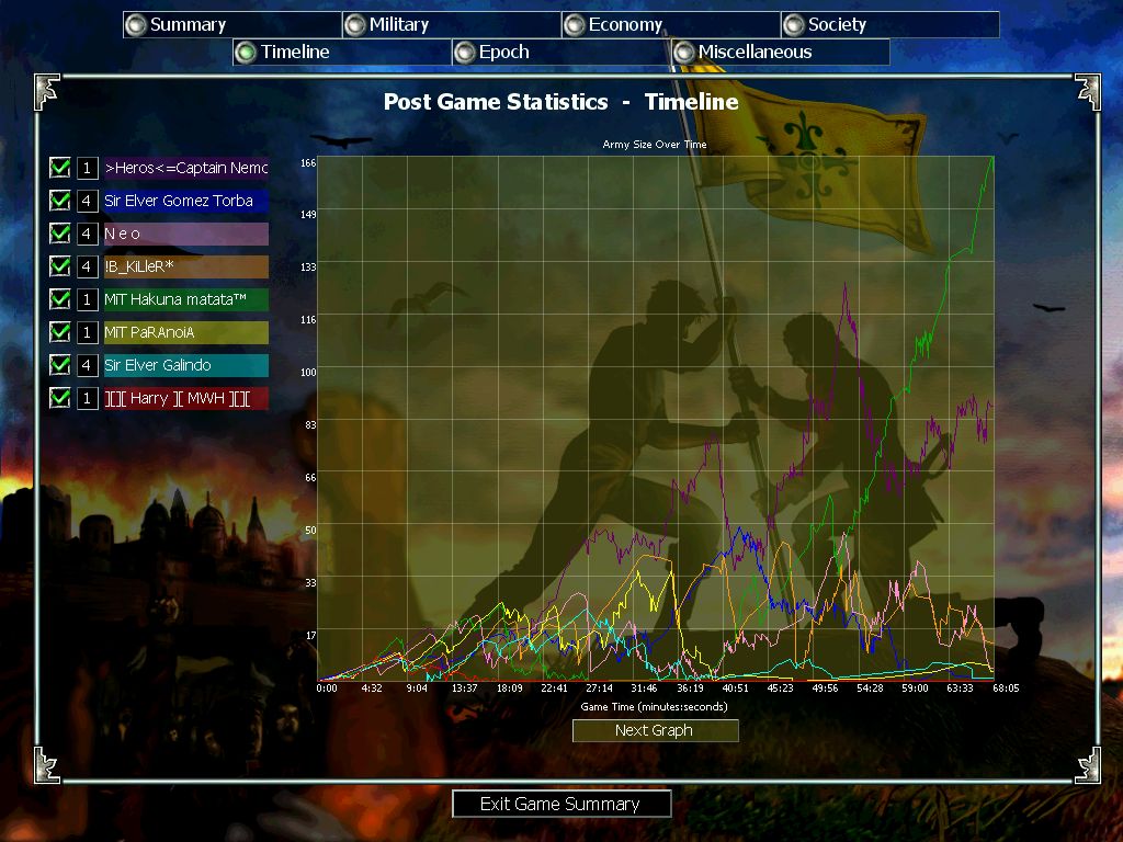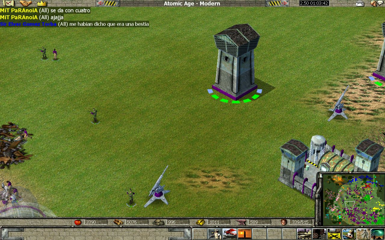 Looking back at the game I think jhon made a mistake trying to stop my big forward instead of perhaps building up a bit more force and then counterattack me. He suffered from too small an army. Killer for some reason wasn't much of a problem. He had some air that I killed and a little ground which came in big bunches, easily killed. His mistake was not going all air and taking out my air advantage (as his ground was completely useless). Neo fought for survival as my troops were constantly attacking his base. Green made a comeback and by the end he proved a little help, though not needed in order to win the game.