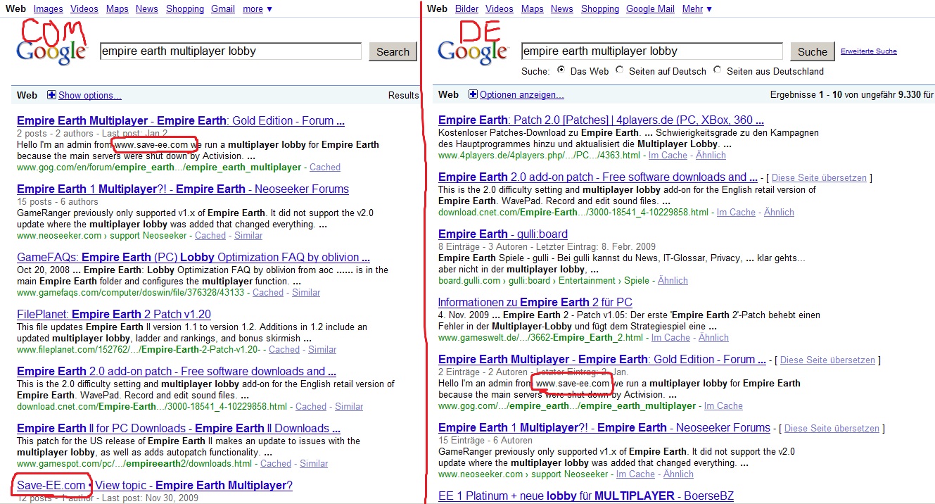 Where did you find this ? When i go for it , exactly what you wrote , i cant find anything about save-ee ... Maybe google.de is different to google.com ??Empire earth multiplayer lobby