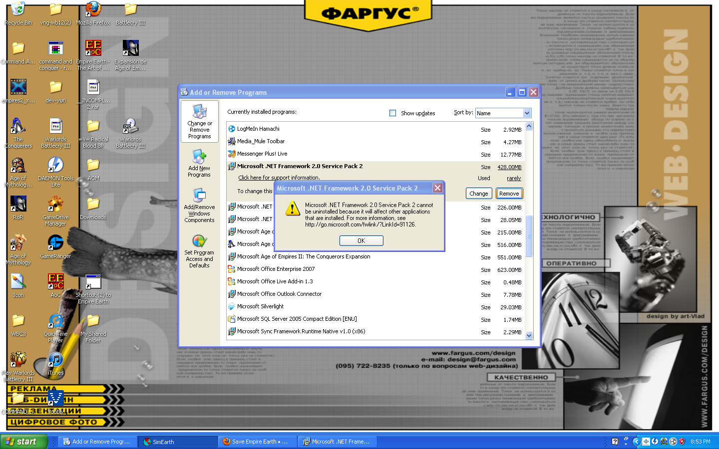 You've definitely got some problems with your installation of .NET on your system. You need to uninstall .NET Framework v2.0 and reinstall it.