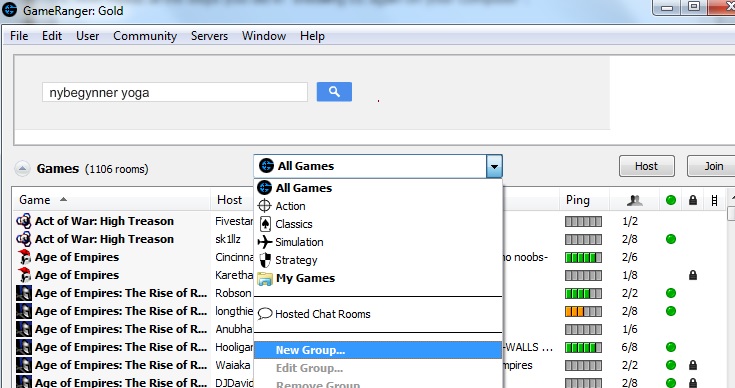 7. Press on the arrow on the right side of "All Games" in GR, and then press "New Group"