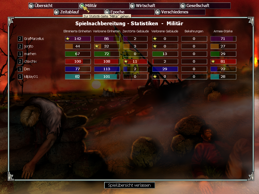 He collected 26623 resources in total, send 25500 resources to his allies, received 200. At the end of the game he had 81 military, 115 vills and 108 lost units. In addition to that, he payed the cost of researching time period II and III. Can anyone of you explain this to me or confirm cheating? [Edit: Sorry for the german ingame language.]